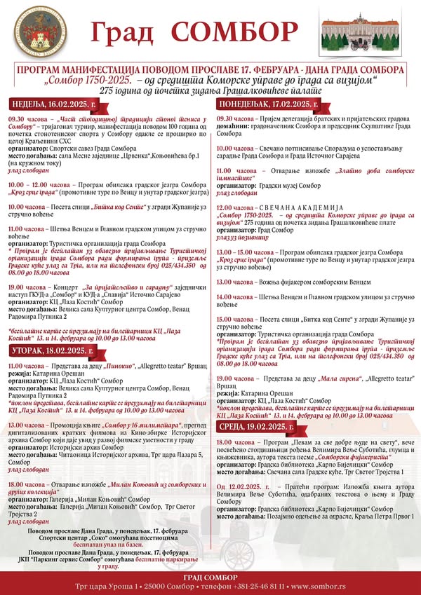 Dan Sombora obeležava se od 16.02, do 19.02.2025 godine.